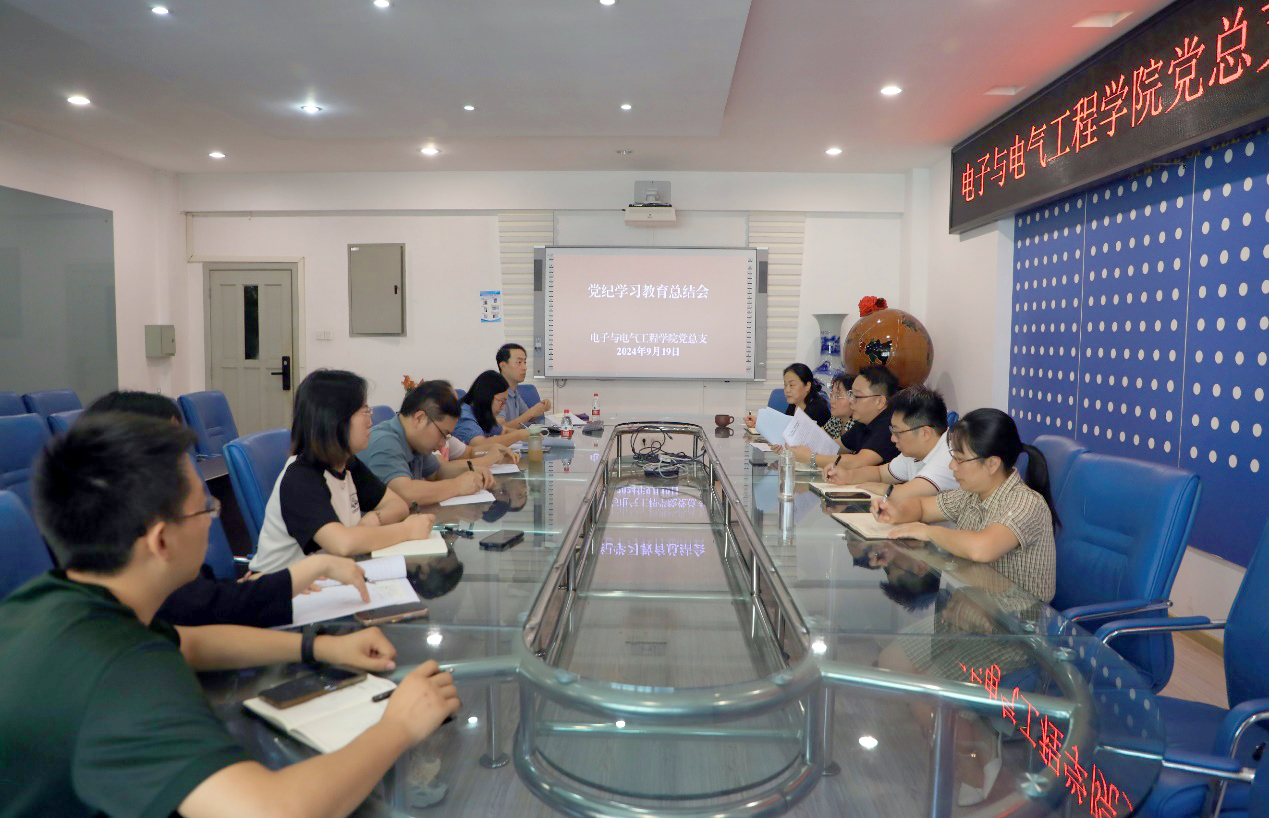 9月19日下午,电子与电气工程学院党总支在逸夫楼412-1召开第18次党总支(扩大)会暨党纪学习教育总结会。党总支委员、党政班子成员、组织员、党支部书记参加了会议。会上传达学习习近平总书记关于党纪学习教育的重要指示精神、中央党的建设工作领导小组会议精神,总结学院党纪学习教育情况。会议由党总支书记余波主持。