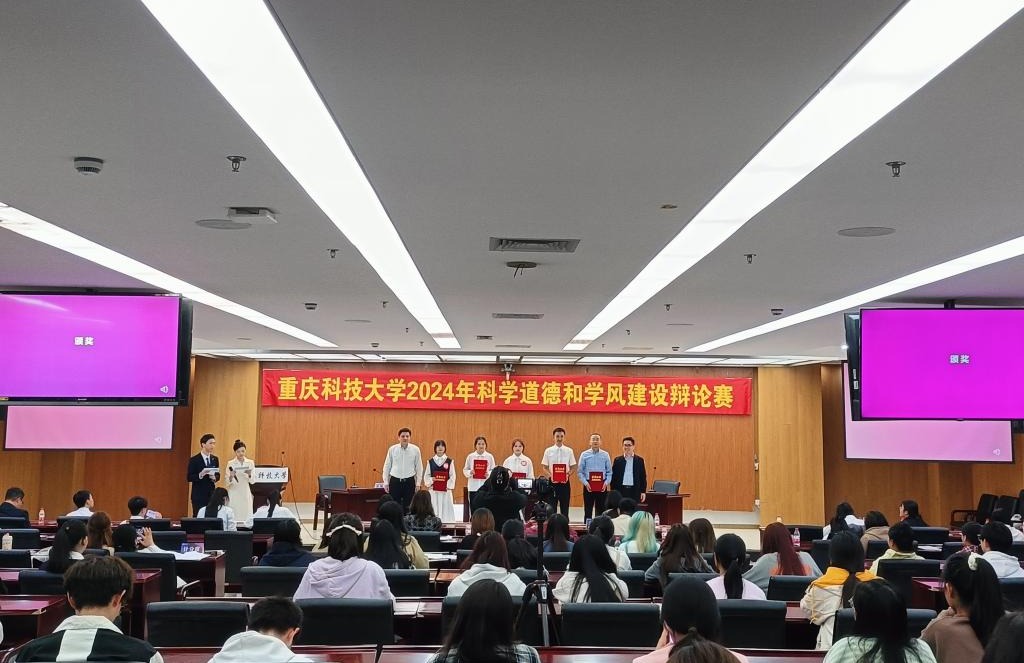 为加强科学道德和学风建设,营造良好的科研生态和学术氛围,锻炼师生的应变、表达能力,活跃学校人文气氛,提高师生人文素养,10月9日下午,由学校科技处、人事处、教务处、学生处、校团委、科协主办,设计与人文学院承办的科学道德和学风建设辩论赛在图书馆906举行。学校科技处、党委宣传部、人事处、教务处、党委学工部相关负责人以及二级学院师生代表共计100余人观看了比赛。