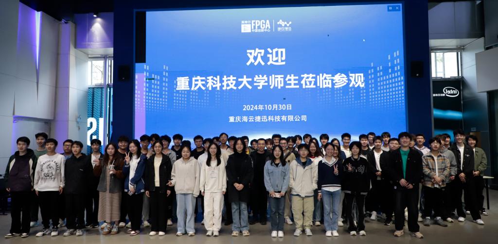 为积极推动我院学风建设,增强专业归属感和认同感,了解行业发展现状和发展前景,10月30日,计算机科学与工程学院(人工智能学院)组织物联网工程专业2024级新生及米兰汽车软件人才定制班学生前往英特尔FPGA中国创新中心开展参观实习,重庆海云捷迅科技有限公司工程师进行全程讲解。
