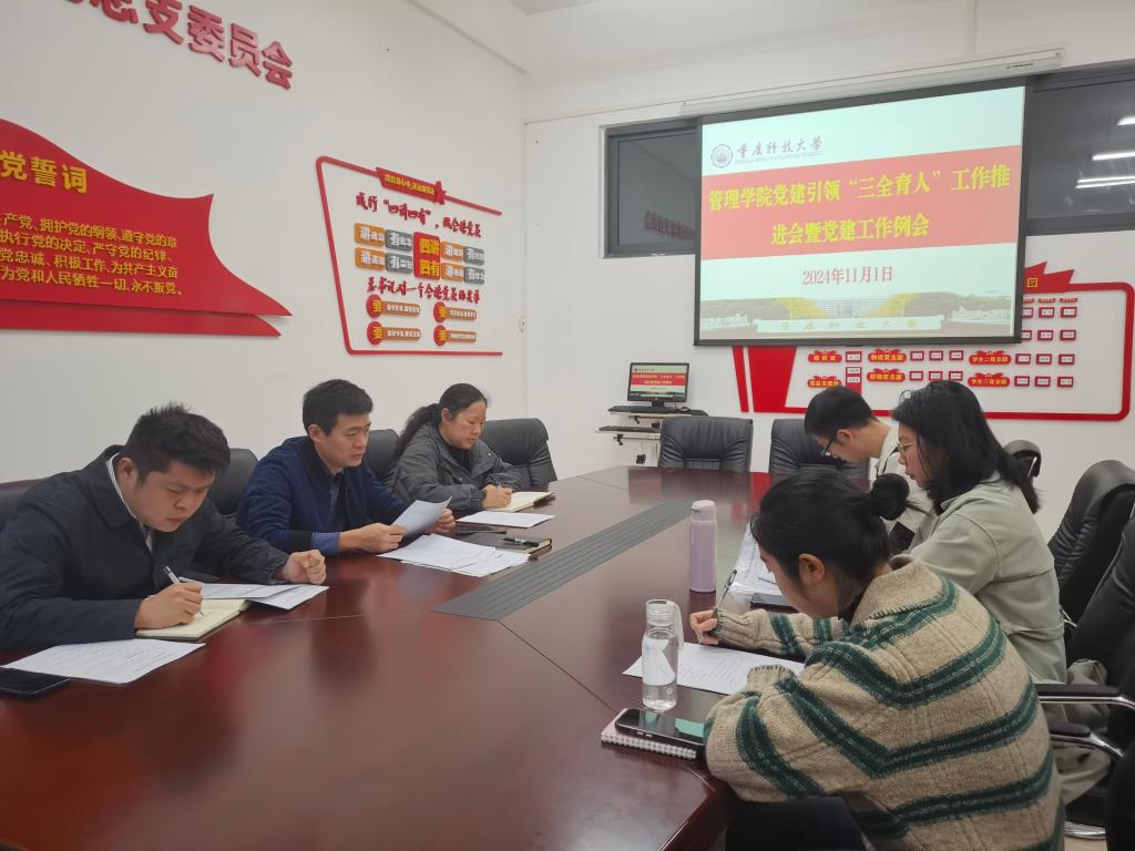 为进一步深入推进“三全育人”综合改革,11月1日,管理学院在博学楼F310会议室召开“三全育人”工作推进会暨党建工作例会。会议由党总支书记李旭东主持,党总支委员、党支部书记、全体专兼职辅导员参加了会议。