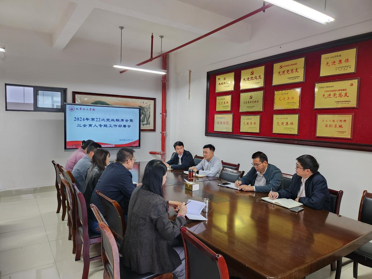 近日,化学化工学院在笃行楼K1005会议室召开 “三全育人”专题工作部署会。学院班子成员、科以上干部参加会议。会议由党总支书记杨睿宇主持。