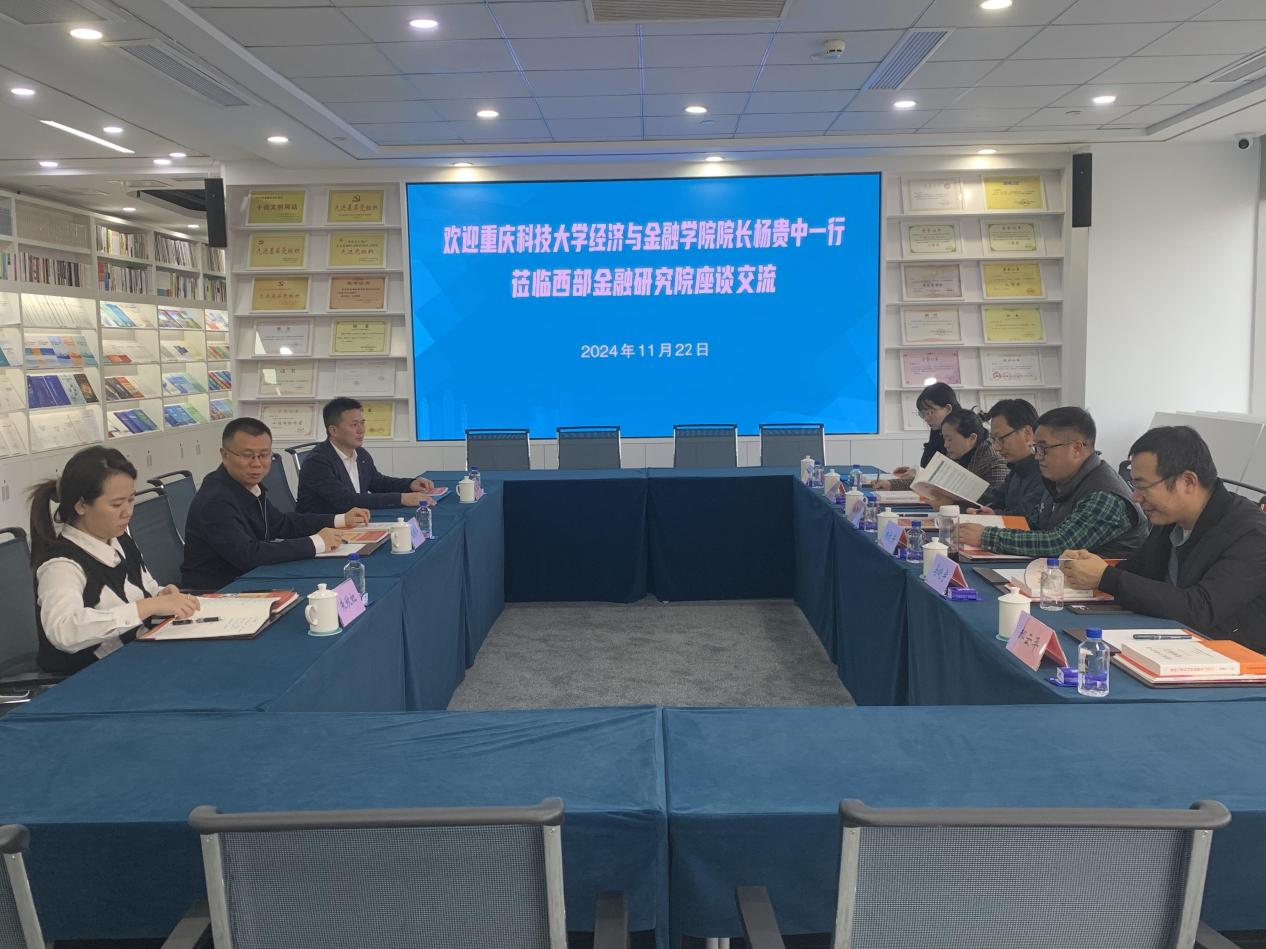 为进一步深化校企合作,提升人才培养质量和科研合作水平,拓展学生实习与就业岗位,11月22日下午,米兰经济与金融学院院长杨贵中带领专业教师杨文芳、敬希泠、马晓宇、郝云平、刘婷婷一行,前往重庆西部金融研究院开展调研交流和访企拓岗活动。重庆西部金融研究院院长陈银华、副院长陈聪及办公室副主任朱秋红参加了调研交流会。