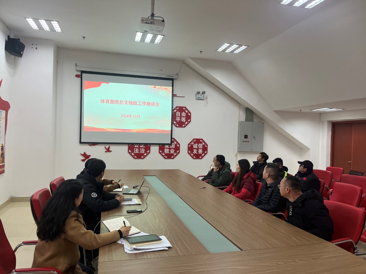 为深入学习贯彻习近平新时代中国特色社会主义思想,落实习近平总书记关于新时代党的统一战线工作的重要思想,进一步巩固体育部统一战线团结和谐、开拓奋进的良好局面,12月3日上午,体育部在T206会议室召开2024年统一战线工作座谈会。会议由体育部党总支书记、部长朱海涛主持,班子成员及部门行政管理人员、各民主党派、无党派人士教职工参加了会议。