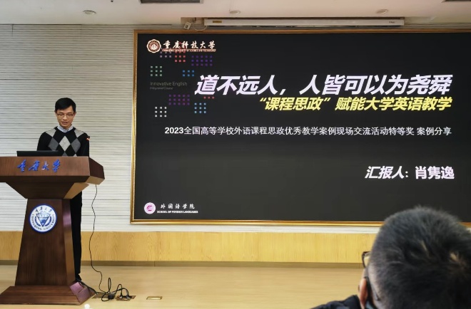 12月16日,重庆市高等教育学会大学外语教学研究专业委员会2024年会暨重庆市大学外语课程群虚拟教研室教学研讨会在重庆大学召开。米兰教师肖隽逸受邀在会上作“道不远人,人皆可以为尧舜——‘课程思政’赋能大学英语教学”的课程思政优秀教学案例分享。