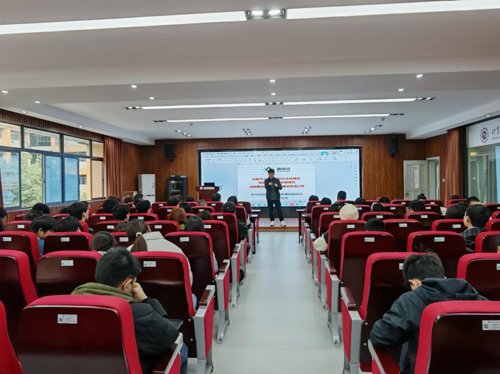 为促进毕业生高质量就业,搭建校企合作新平台,3月28日上午,计算机科学与工程学院(人工智能学院)邀请成都国信安到校开展技能培训及就业推荐。活动由学院党总支副书记董晓欢主持,成都国信安信息产业基地有限公司项目经理钟寒主讲,吸引了众多应届毕业生参与。