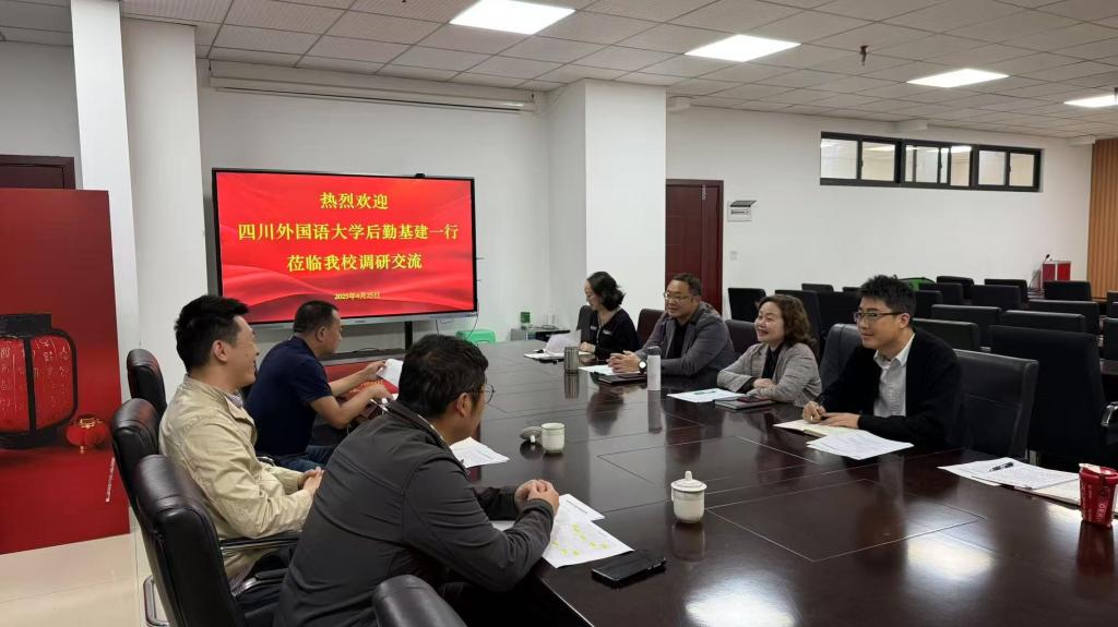 4月25日上午,四川外国语大学后勤基建管理处副处长冯波一行来校调研交流,资产与后勤党总支书记彭渝及资产与后勤管理处相关人员参会,会议由资产与后勤管理处副处长刘金晟主持。