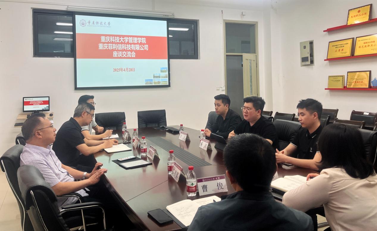 4月28日下午,重庆菲利信科技有限公司副总蔡波一行来校交流座谈。国际合作交流处处长李海荣、正处级组织员杨霄,管理学院副院长吕奇光、物流系主任曹骏以及教师代表赵方苏参加了座谈会。座谈会由吕奇光主持。