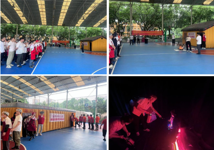 培训环节,保卫干部向食堂从业人员介绍了油锅火灾、电气火灾等不同火灾场景下消防器材的选择及扑救方法,讲解并演示了灭火器、消火栓、灭火毯、疏散引导箱等设备的使用要点。参训人员分组进入模拟灭火帐篷和疏散逃生帐篷,通过模拟火灾现场学习掌握烟雾环境下的火源扑救技巧和低姿疏散逃生要领。