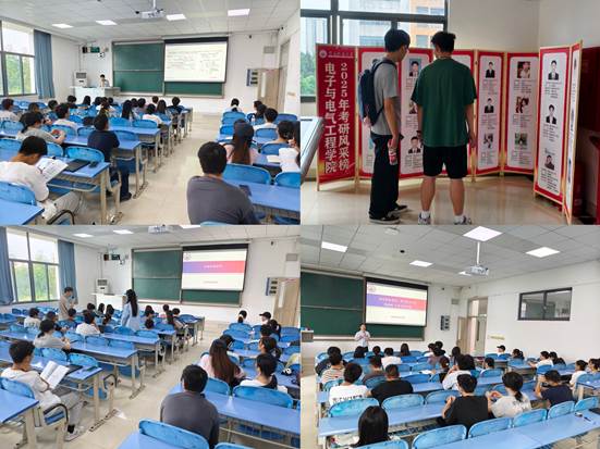 为扎实推进“三全育人 从我做起”主题活动,进一步加强学院学风建设,帮助学生明确考研目标、科学制定备考计划,5月21日下午,电子与电气工程学院在教学楼A201举办“2025年考研经验分享交流会”。本次交流会邀请陈晓桐等9位成功考取硕士研究生的优秀学生代表分享备考经验,学院辅导员及2022级备战考研学生共100余人参加,现场气氛热烈。
