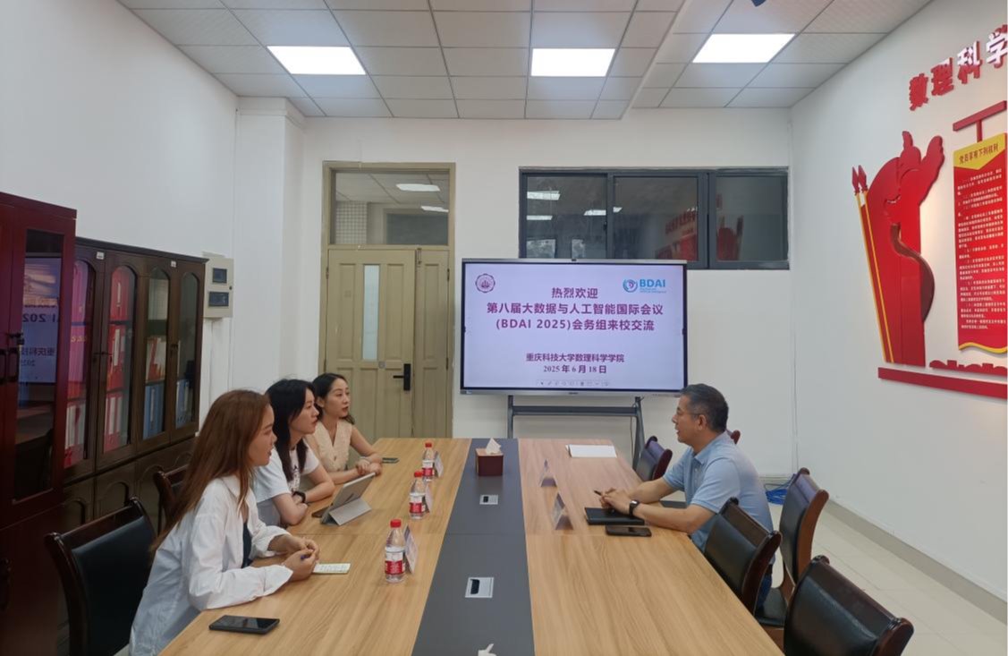 彭军就学院在对外合作交流特别是举办国际学术会议方面的情况进行了详细介绍,周雨对中会集团—亚昂教育作了详细介绍。双方就国际学术会议交流领域的合作点进行了充分讨论 ,表达了进一步加强合作的愿望,并就2026年在重庆举办并由米兰承办第九届大数据与人工智能国际学术会议(BDAI 2026)的可行性进行了探讨。会后,周雨一行还专程拜访了米兰智能数学与自主智能研究院院长、首席科学家王迎旭教授。
