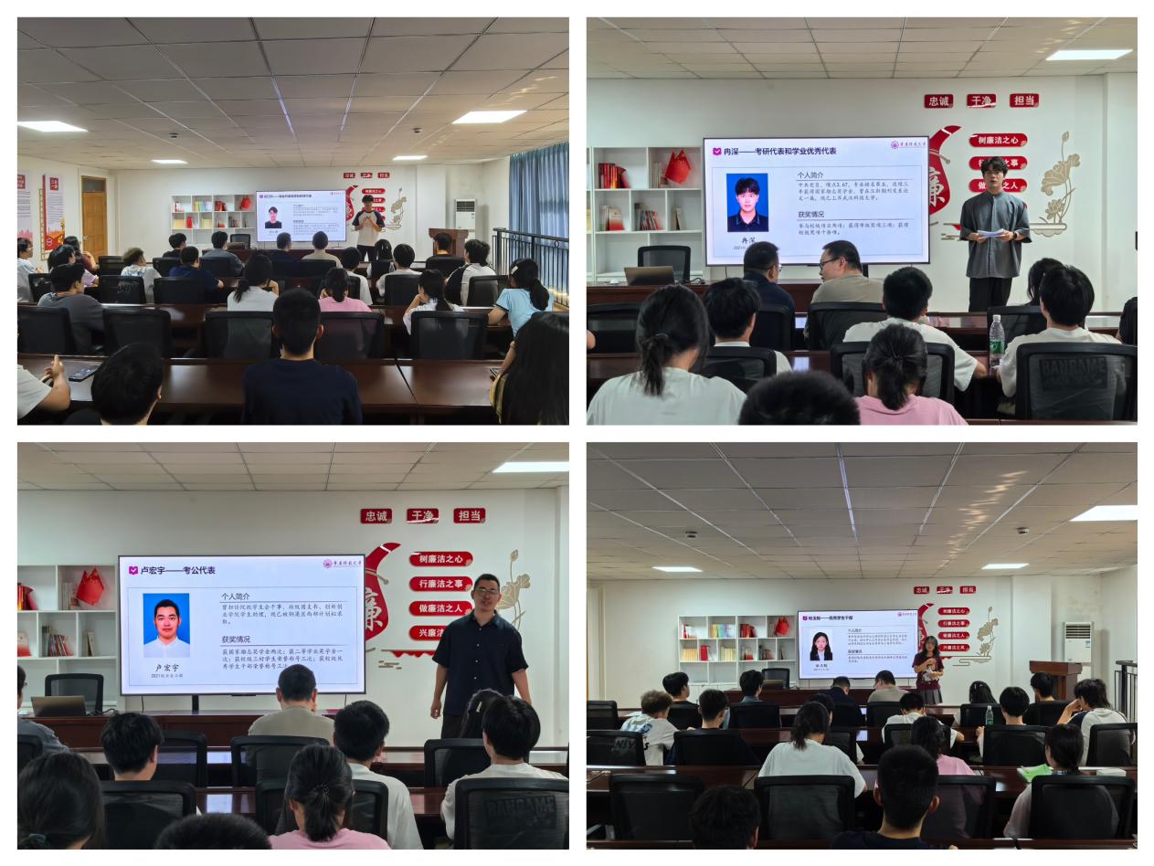 分享交流会上,即将继续读研深造、前往知名企业就职或投身基层工作的毕业生们,结合自己努力奋斗的历程,分享了大学四年的收获感悟与宝贵经验。他们的经历,生动诠释了奋斗的青春最美丽,赢得现场无数掌声。在交流互动环节,现场气氛热烈,低年级同学们围绕考公考研、求职面试、科技创新以及团学工作等问题积极提问,优秀毕业生们一一耐心解答,倾囊相授。
