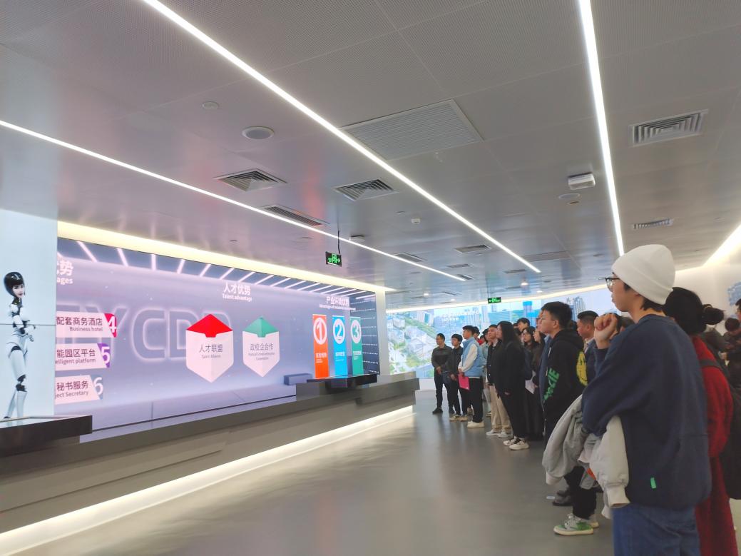 毕业生们先后走访参观了重庆云谷展厅、重庆·中关村智酷人才创新实践中心、重庆人和数据研究院有限公司、重庆文德数字科技有限公司、博彦科技股份有限公司、重庆才耀科技有限公司,详细了解了园区规划、企业基本情况、用人需求及招聘要求。校企双方就学生实习实训、共建研究生工作站、毕业生就业入职等进行了深入交流。参观结束后,产业园组织相关企业进行了集中招聘宣传,毕业生们现场投递了简历。