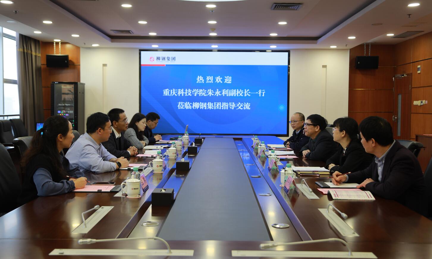 韩宗桂对朱永利一行的到访表示欢迎,他介绍了柳钢集团公司的基本情况,希望校企双方能发挥各自优势,进一步开展更加深入的合作,通过依托场景的应用合作、专业性人才的技术支撑合作、系统梳理和优化合作,在学生就业、技术人员培训、科研创新、成果转化、实验装备及师资共享等方面取得更多标志性的成果。